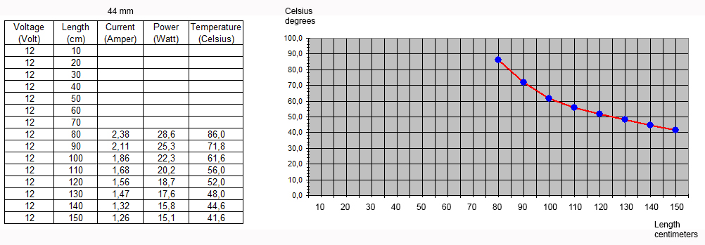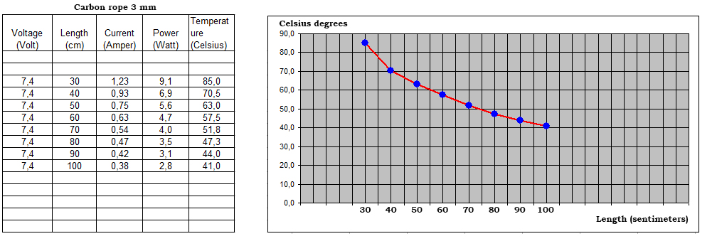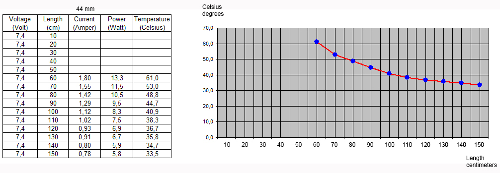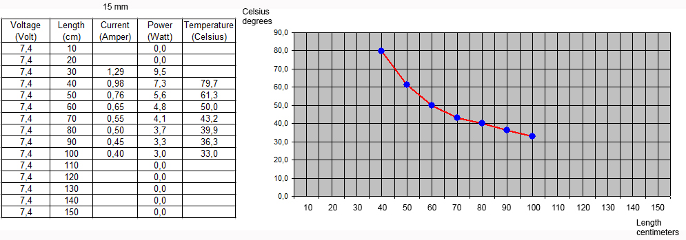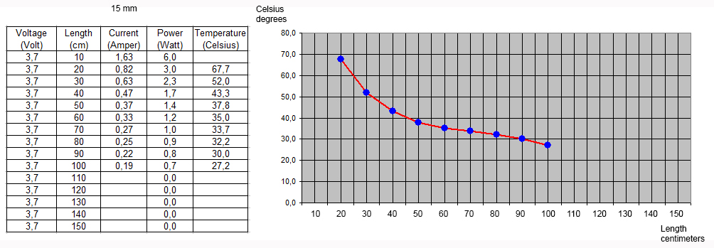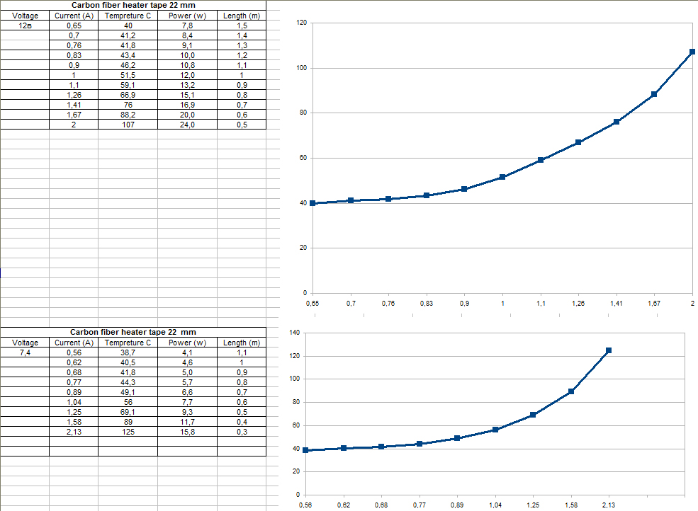 temperature generated. Measurements were taken at a voltage of 12, 7.4 and 3.7
